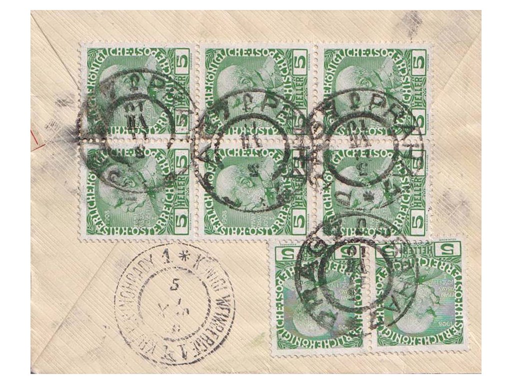 Poštovní celistvost, 1910, DR Praha, Ex-dopis zasl. v místě, hezká frankatura, stopy pošt. provozu