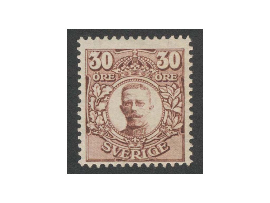Poštovní známka, 1911, 30 Ö Gustaf, MiNr.77, * po nálepce
