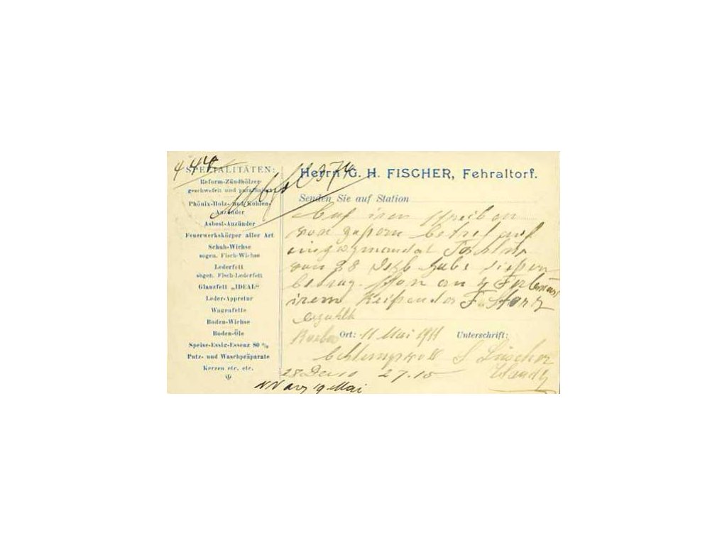 1911, DR Rorbas, firemní karta s přítiskem, stopy pošt. provozu