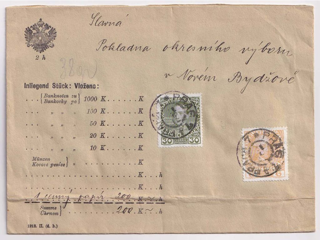 1912, cenný dopis vyfr. zn. 6 a 30 H, DR Prag, zasl. v roce 1912 do Nového