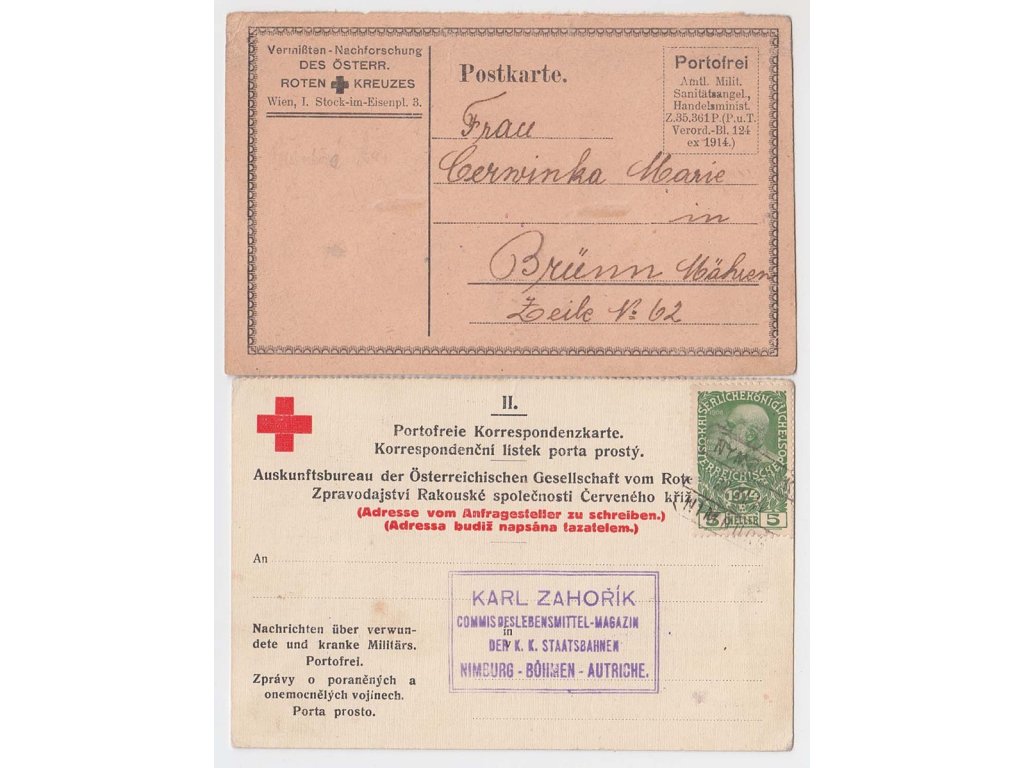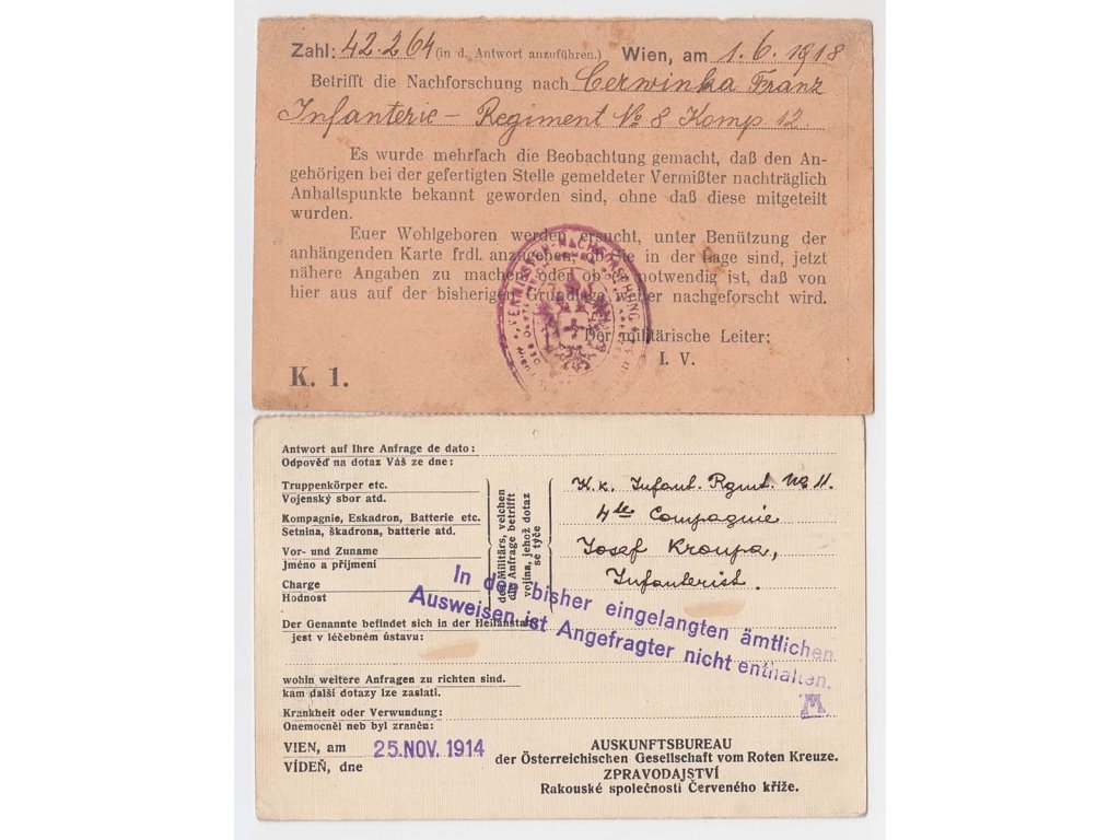 1914/1918, Pátrání po nezvěstných osobách, 2 kusy korespondence