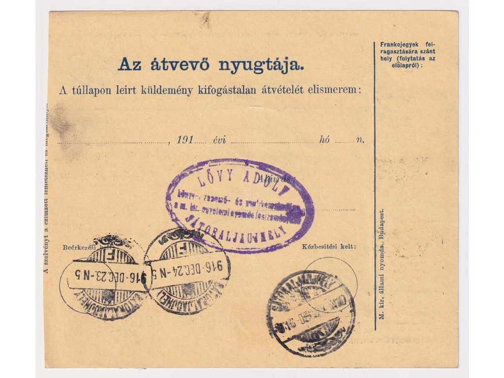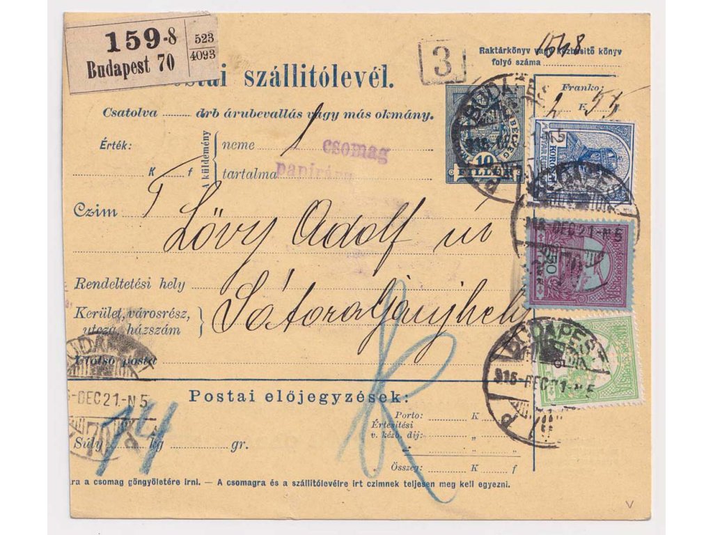 Maďarsko, 1916, větší díl celinové průvodky 10 f dofr. pestrou frankaturou známek,