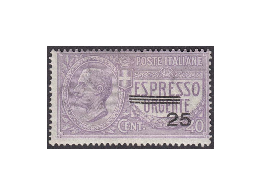 Poštovní známka, 1917, 25C/40C Spěšná, MiNr.128, * po nálepce, drobný vlom