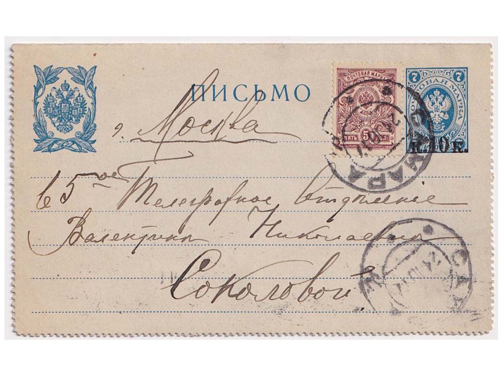 1917, DR Samara, přetisková zálepka zasl. v roce 1917 do Sokolova,