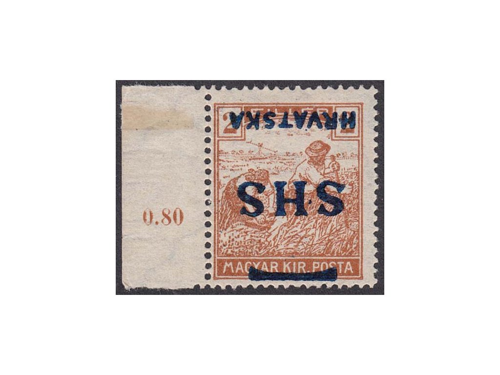 Poštovní známka, 1918, 2 f Ženci, obrácený přetisk, MiNr.66, * po nálepce