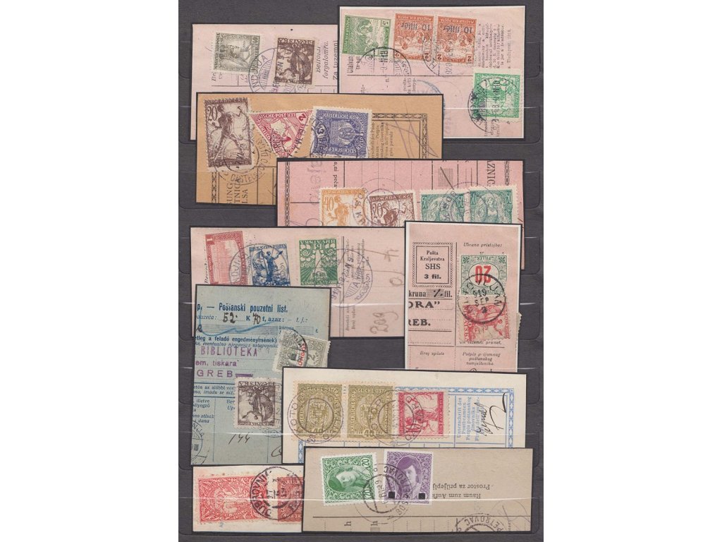 1919, 10 kusů útržků průvodek se smíšenými frankaturami, hezký materiál