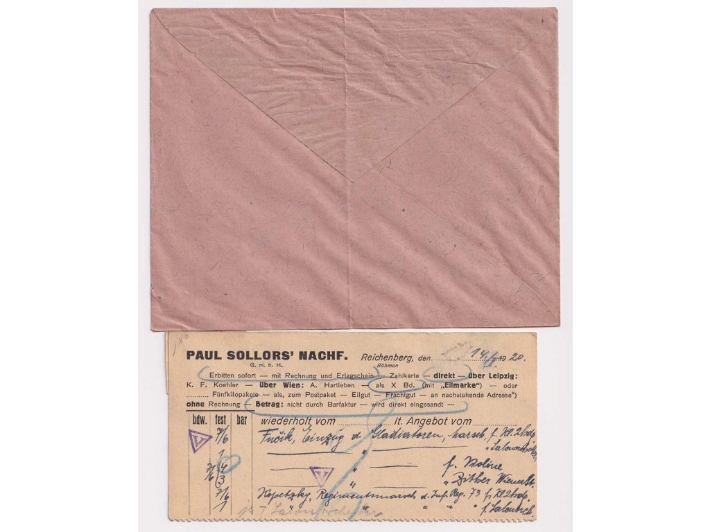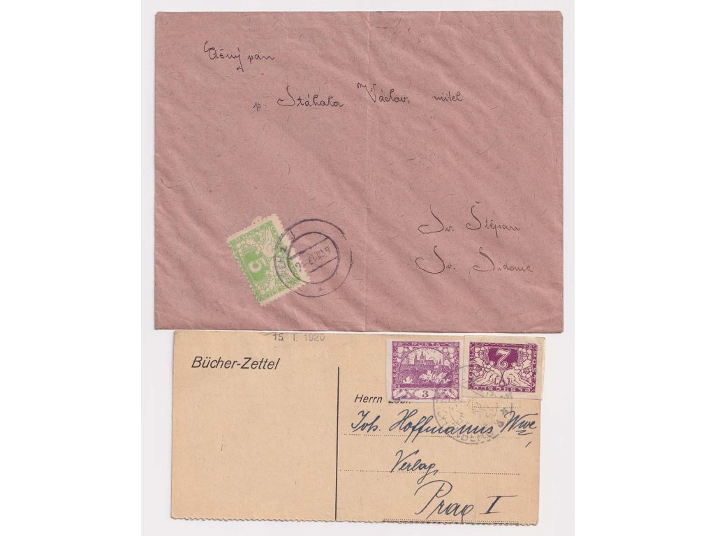 1919, 2 ks celistvostí vyfr. spěšnými známkami, DR Zábřeh resp. Reichenberg,