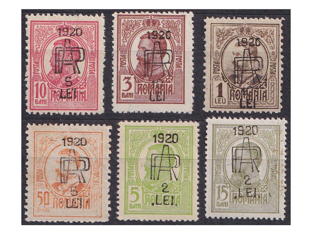 Poštovní známka, 1920, letecké přetisky PPA 1920, 6 kusů známek, každá jiná, **
