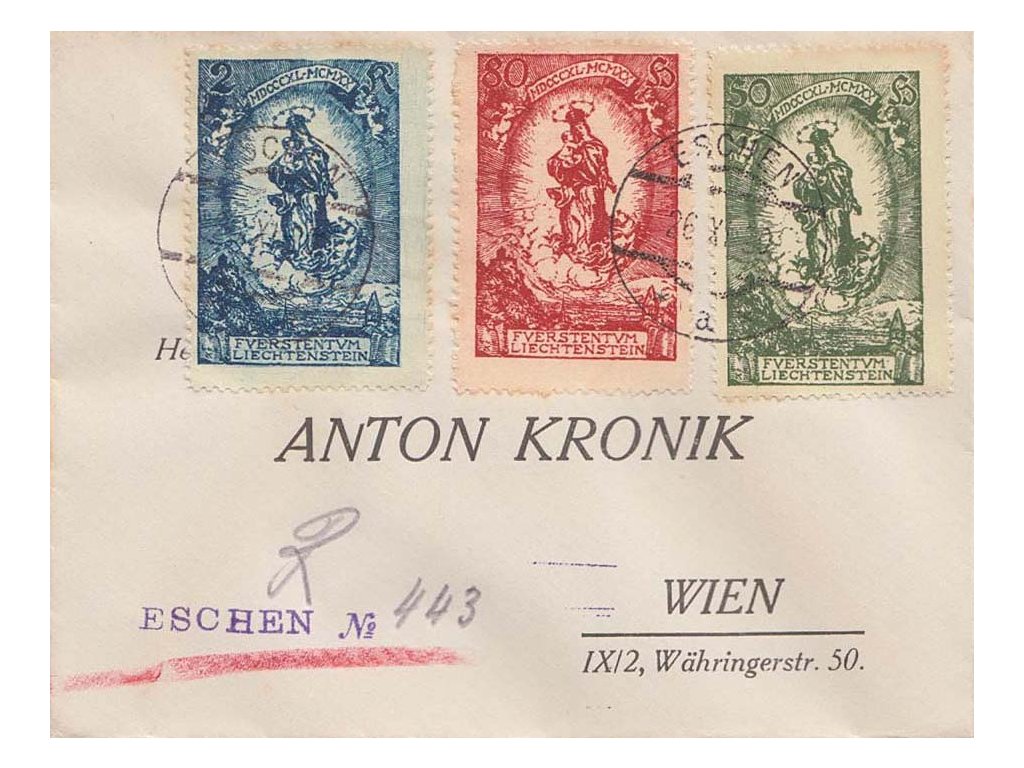 1920, R-dopis vyfr. pestrou frankaturou, zasll v roce 1920 do Vídně