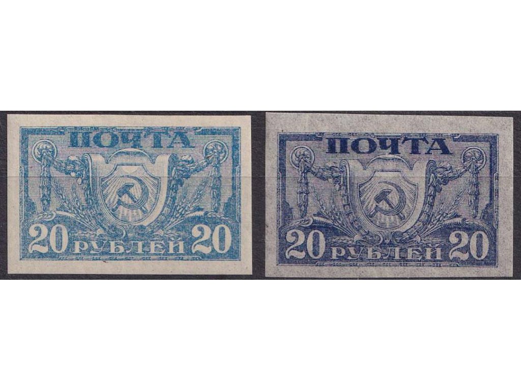 Poštovní známka, 1921, 20 R Znak, různé papíry, MiNr.154x,y, **/*