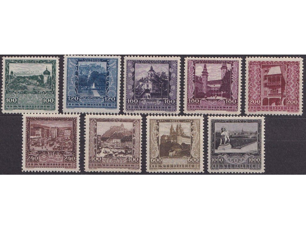 Poštovní známka, 1922, 100-1000 Kr série Města, MiNr.433-41, **/*