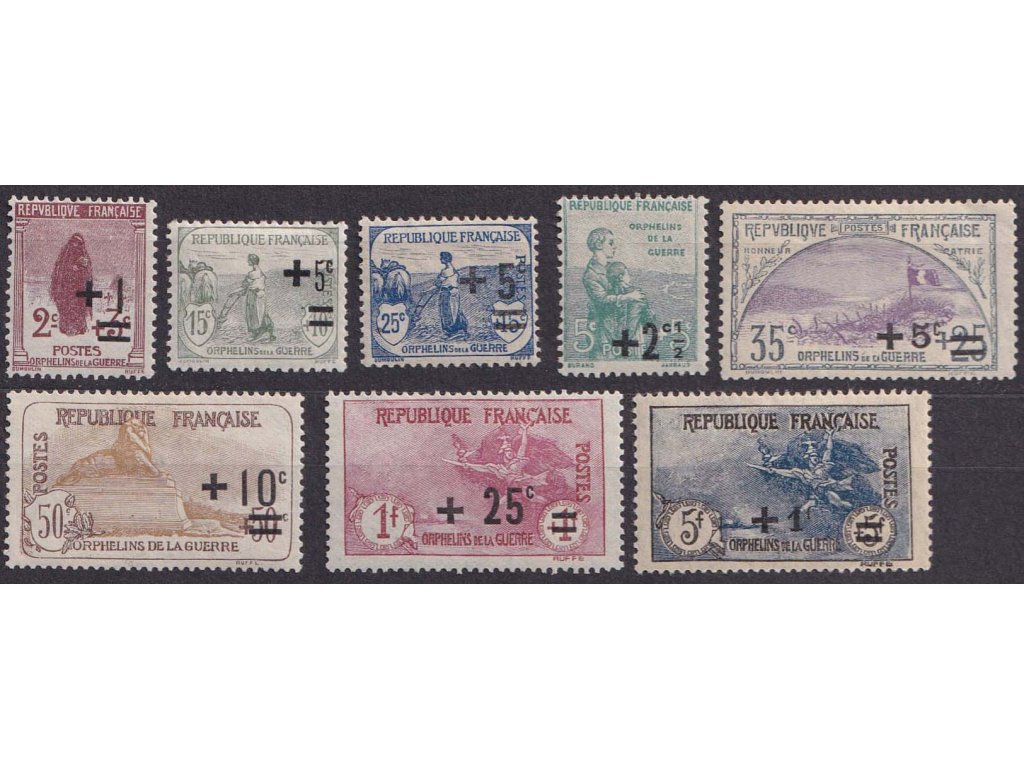 Poštovní známka, 1922, 2C+1C-5Fr+1Fr přetisková série, MiNr.144-51, těžší *