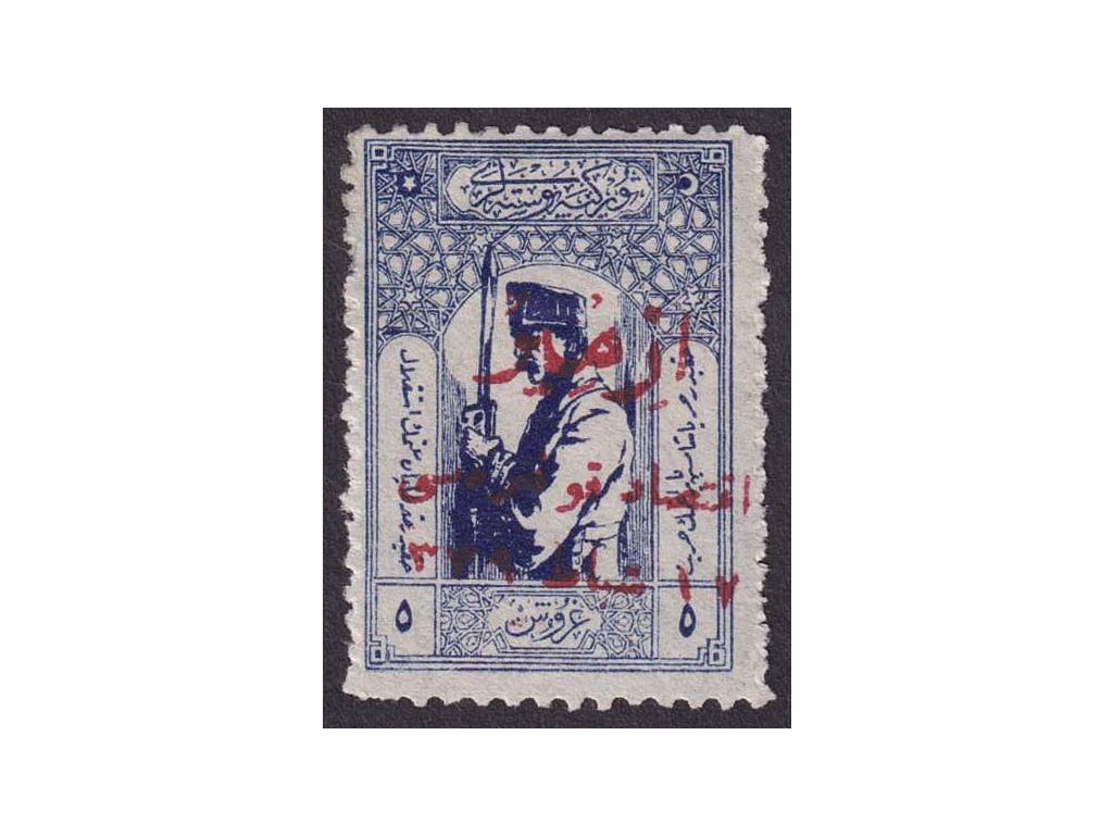 Poštovní známka, 1923, 5 Pia Voják s přetiskem, MiNr.797, * po nálepce