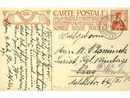 Letecká celistvost, 1923, letecká obrazová dopisnice 10 C dofrankovaná leteckou známkou 50 C, razítko Geneve, zasláno do Zürichu, všechny náležitosti, katalog Michel MiNr.184, ohnutý růžek, kvalita - viz. foto