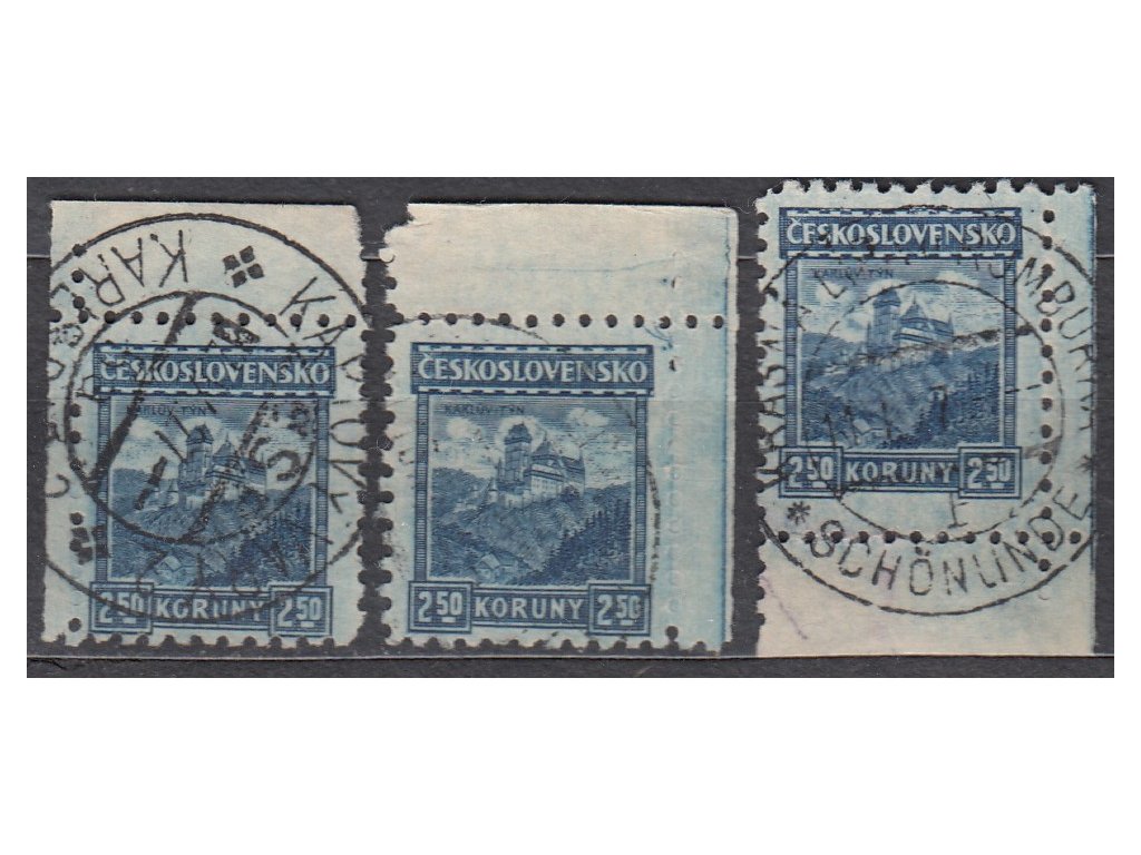 Poštovní známky 1926, 2.50Kč Karlštejn, bez průsvitky, rohové kusy, Nr.222, razítkované