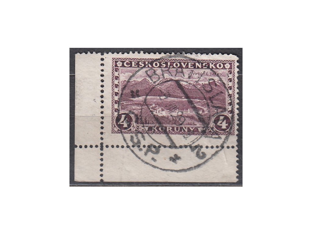 Poštovní známka 1926, 4Kč Tatry, bez průsvitky, levý dolní rohový kus, Nr.231