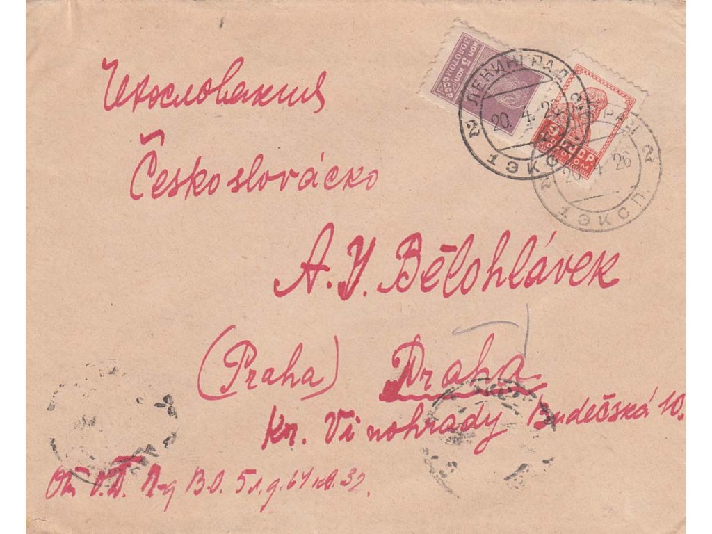 1926, DR Leningrad, dopis zaslaný do Prahy, hezká frankatura, prošlé