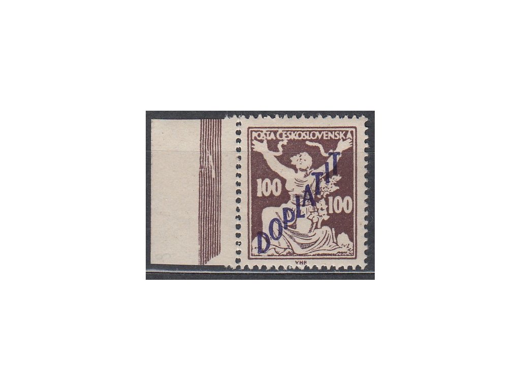 Doplatní známka 1927, 100h hnědá, krajový kus s vrypem v rámu + VV - bílé ruce, Nr.DL54, **