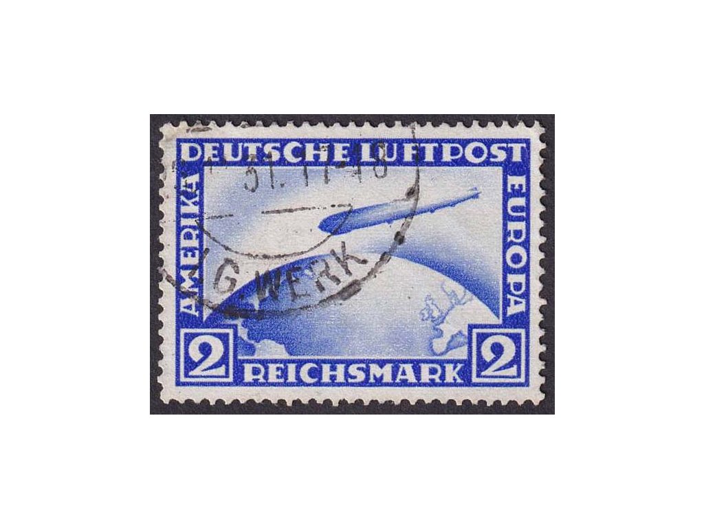 Poštovní známka, 1928, 2 RM Zeppelin, MiNr.423, razítkované