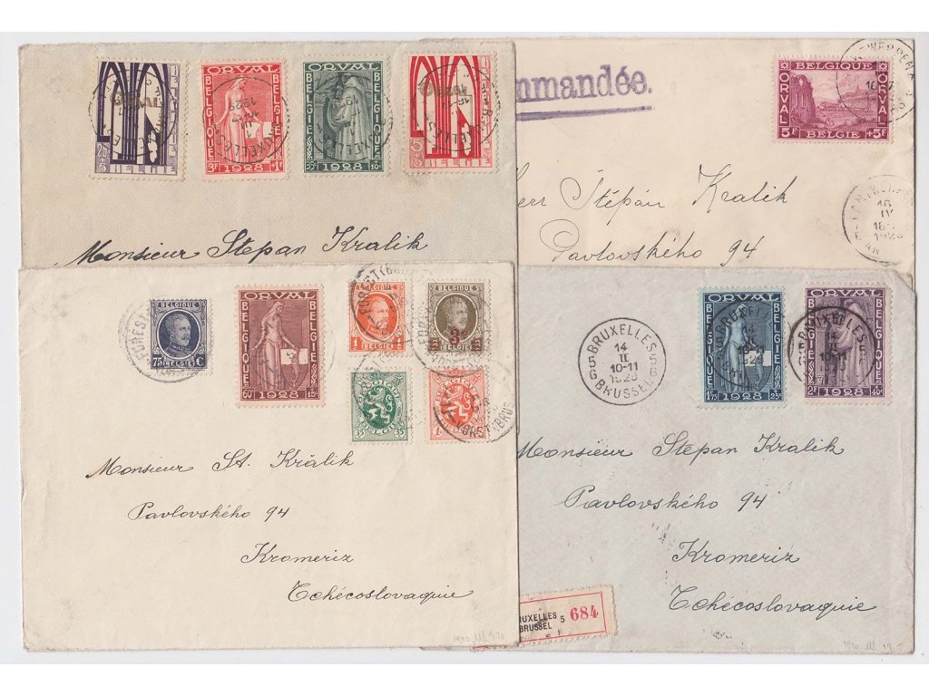1928, 4 kusy dopisů z roku 1928, většina R, různé frankatury, horší jakost