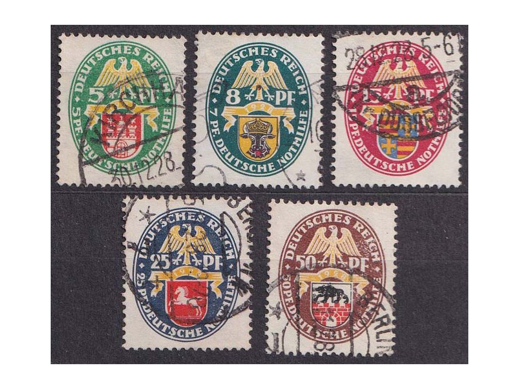 Poštovní známka, 1928, 5-50 Pf série Znaky, MiNr.425-29, razítkované, ilustrační foto