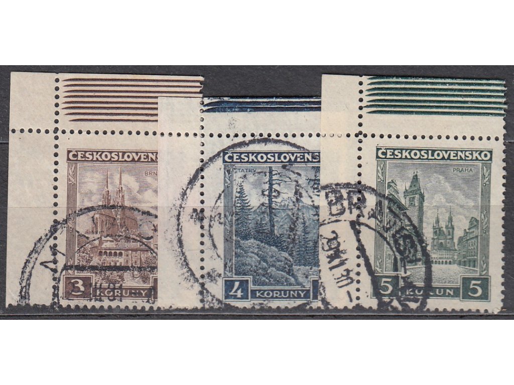 1929, 3,4 a 5Kč Krajinky, rohové kusy s bordurou na okraji, Nr.254-6, razítkované