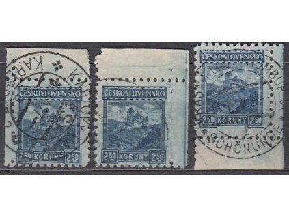 1926, 2.50Kč Karlštejn, bez průsvitky, rohové kusy, Nr.222, razítkované, ilustrační foto