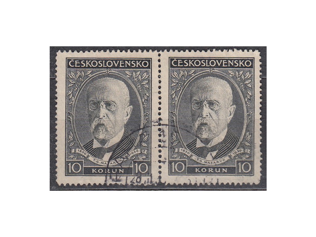 Poštovní známka 1930, 10Kč Masaryk, 2páska!, Nr.264, razítkované, vzácné, razítkovaný vysoký nominál
