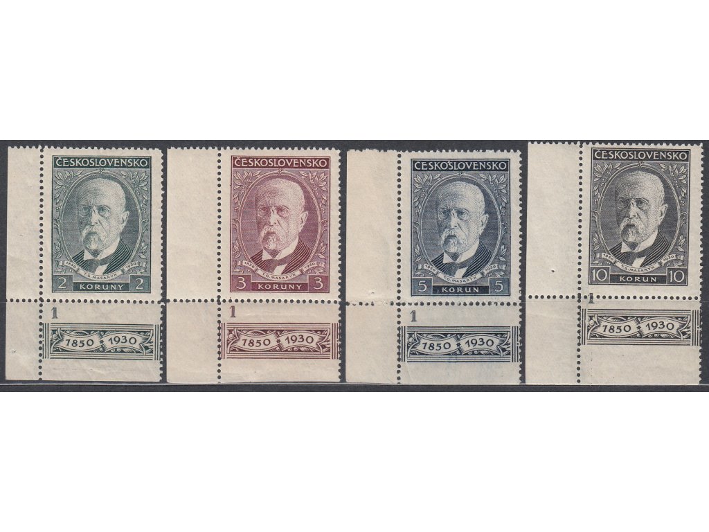 Poštovní známky 1930, 2-10Kč TGM, dolní rohové kupony s DČ 1, Nr.261-4, **