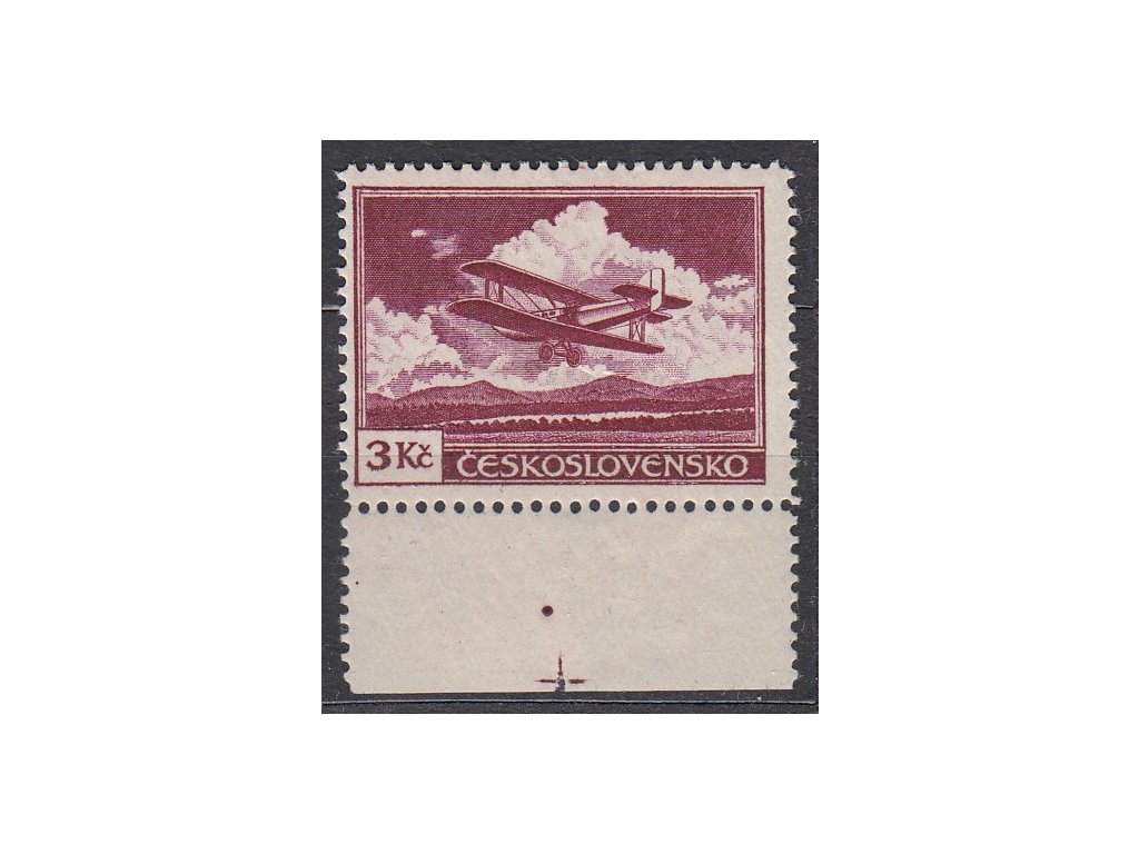 Letecká známka 1930, 3Kč fialová, kraj. kus s křížkem a kolečkem na okraji, Nr.L10, **
