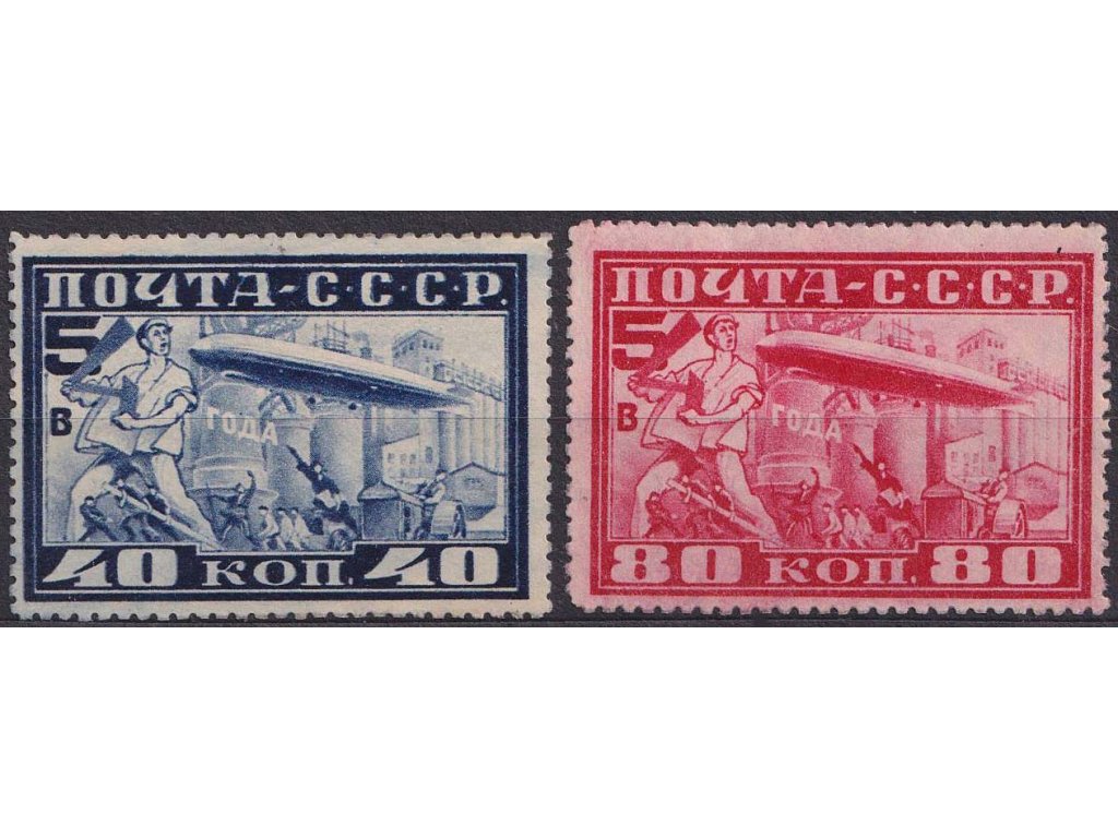 Poštovní známka, 1930, 40-80 K letecká série, L 10 1/2, MiNr.390-91B, * po nálepce, reparovaný lep
