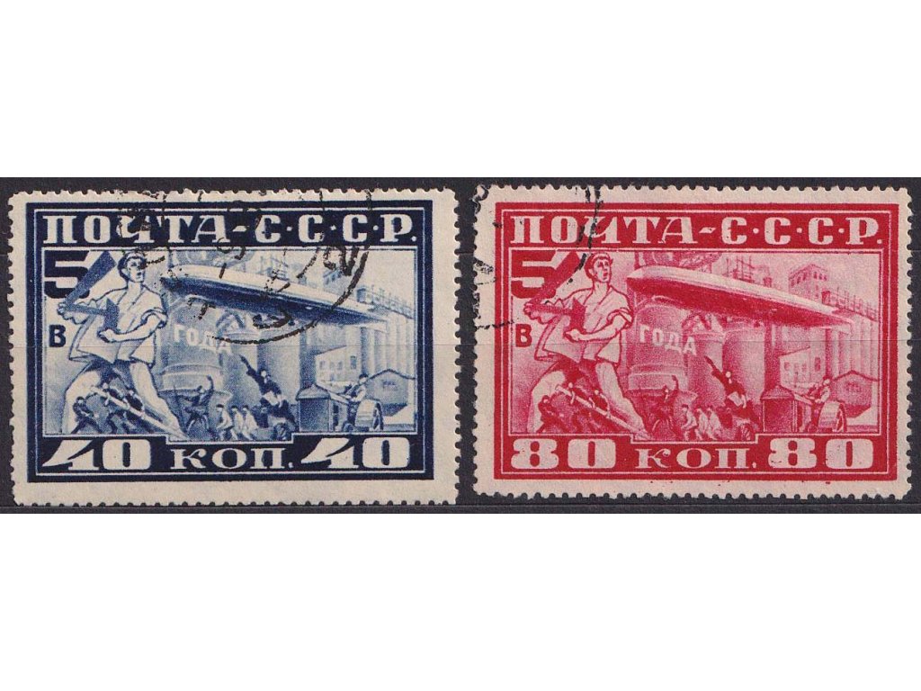 Poštovní známka, 1930, 40-80 K letecká série, L 12 1/2, MiNr.390-91A, razítkované