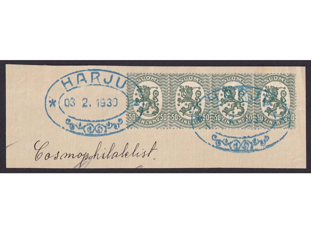 Poštovní známka, 1930, razítko Harju, hezký výstřižek