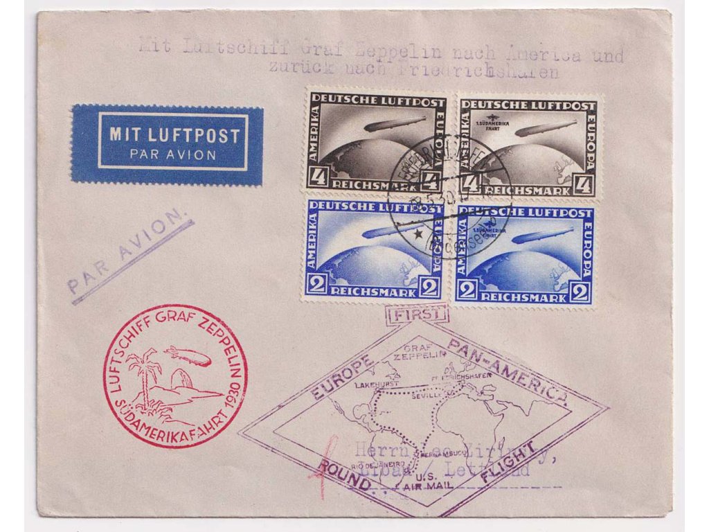 1930, Südamerikafahrt, dopis vyfr. pestrou frank. zeppelinových známek,