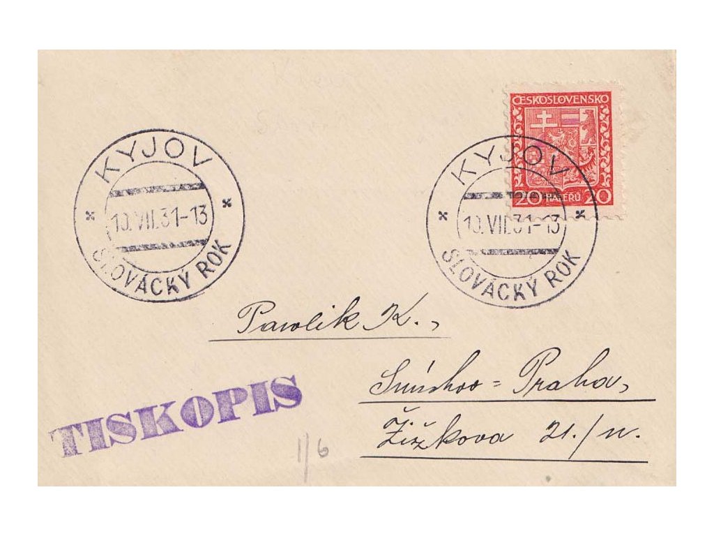 1931, Kyjov, Slovácký rok, tiskopis zasl. do Prahy, malý formát, hezké