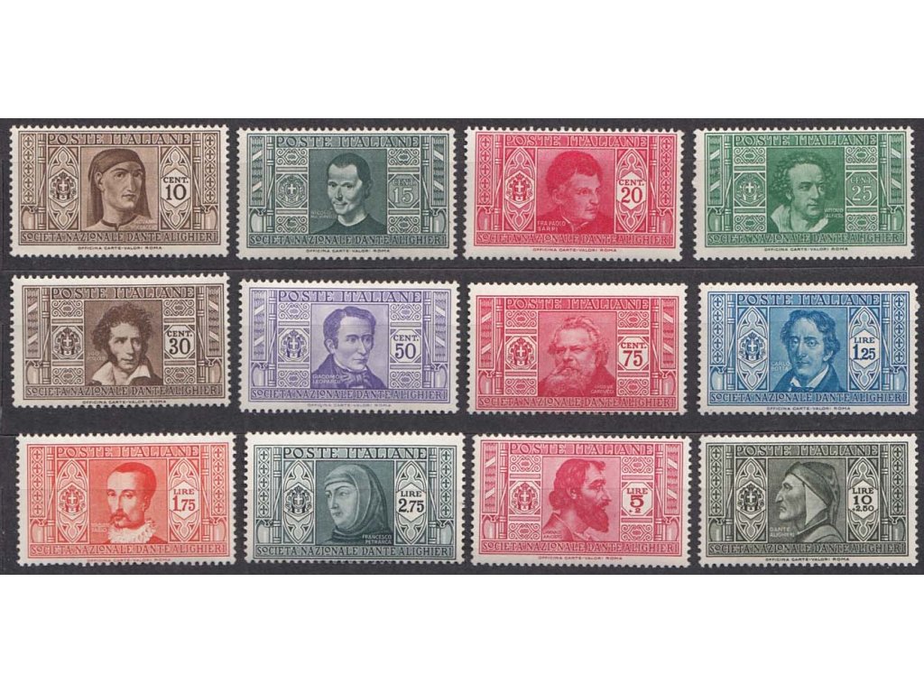 Poštovní známka, 1932, 10C-10L série Dantova společnost, MiNr.373-84, * po nálepce, jedna známka lehce zažloutlý lep