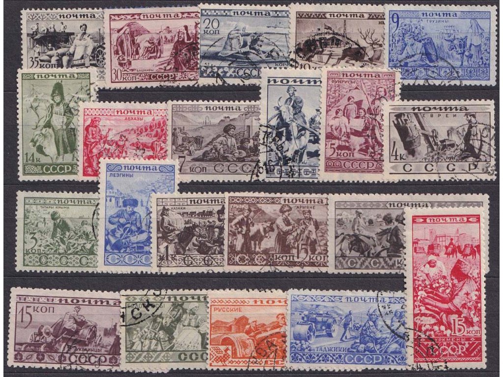 Poštovní známka, 1933, 1-35 K série Lidé v SSSR, MiNr.429-49, razítkované