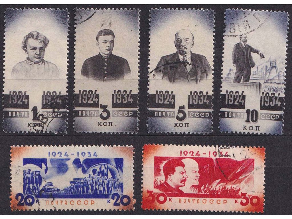 Poštovní známka, 1934, 1-30 K série Lenin, MiNr.488-93, razítkované