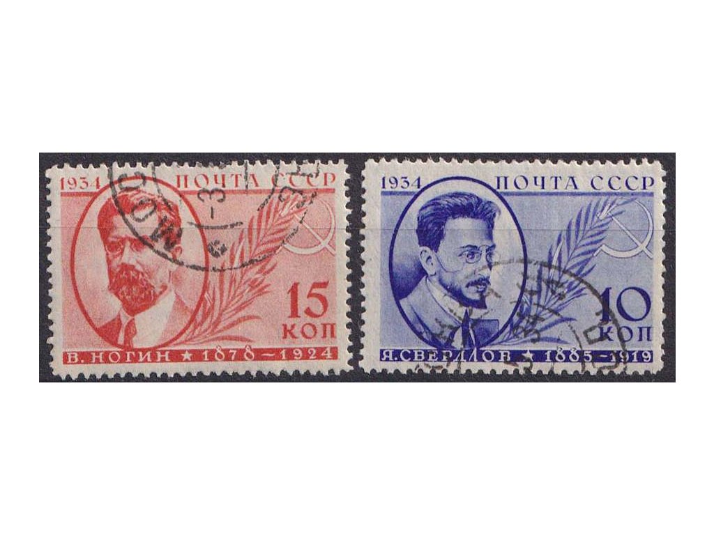 Poštovní známka, 1934, 10-15 K série Aktivisté, MiNr.474-75, razítkované