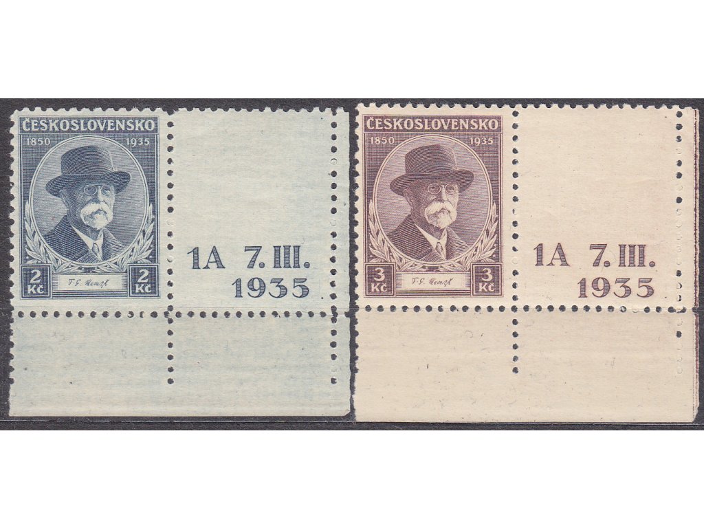 Poštovní známky 1935, 2-3Kč TGM, pravé krajové kupony s DČ 1A, Nr.287-8, **, ilustrační foto