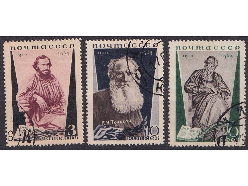 Poštovní známka, 1935, 3-20 K série Tolstoj, MiNr.536-38A, razítkované