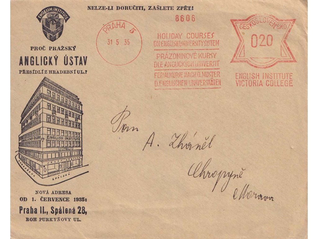 1935, DR Praha, frankotyp Anglický ústav, obálka zaslaná do Chropyně,