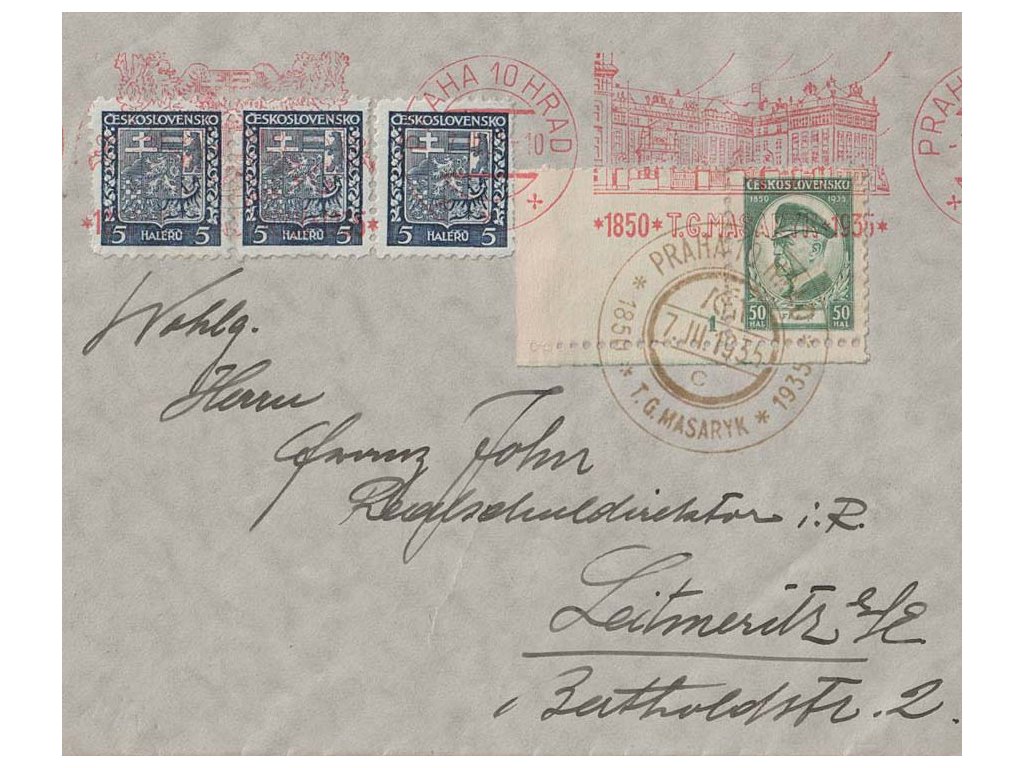 Pamětní razítka, 1935, Praha 10 Hrad, T.G.Masaryk, dopis zaslaný do Litoměřic