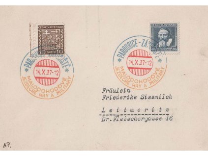 1935, Valašské Meziříčí, T.G.Masaryk, propagační pohled, prošlé