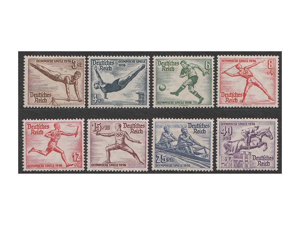 Poštovní známky, 1936, 3-40Pf série, MiNr.609-16, * po nálepce, ilustrační foto