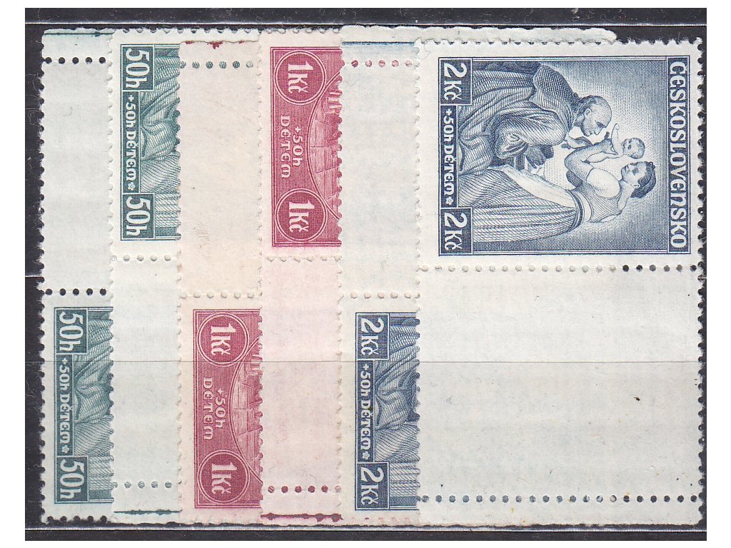 Poštovní známky 1936, 50h-2Kč Dětem, L+P kupony, Nr.295-7, * po nálepce