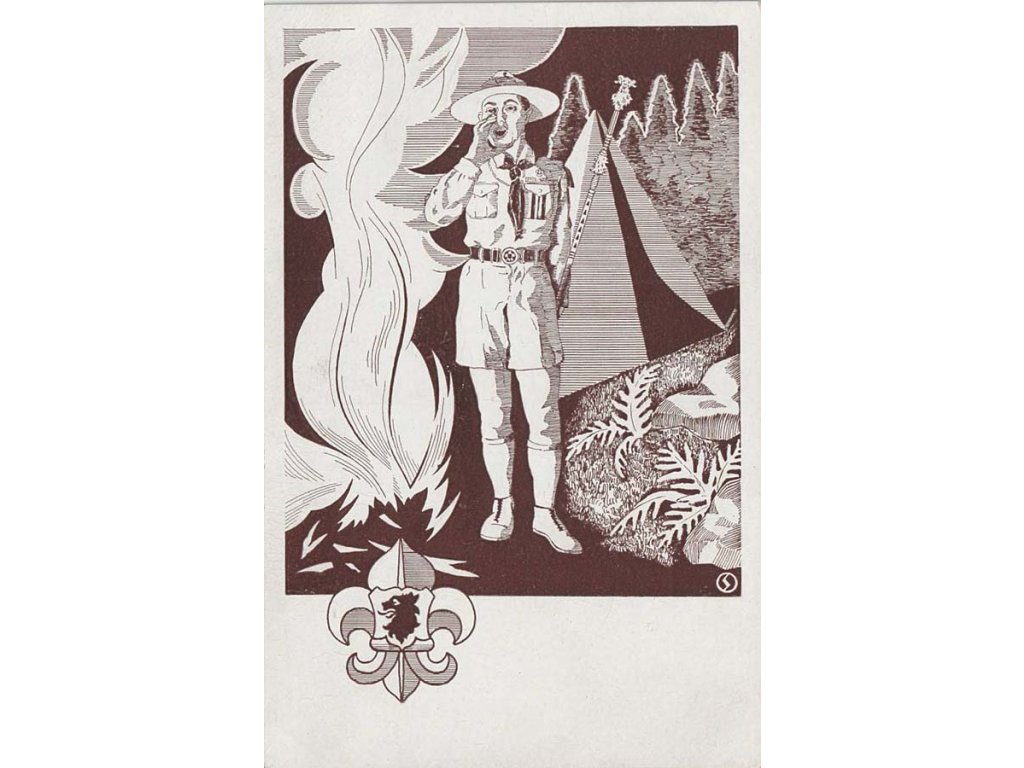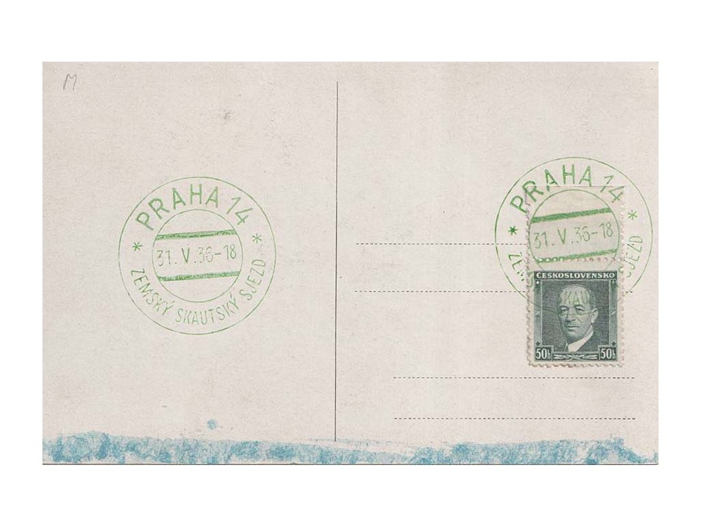 1936, Praha 14, Zemský skautský sjezd, propagační pohled, dv