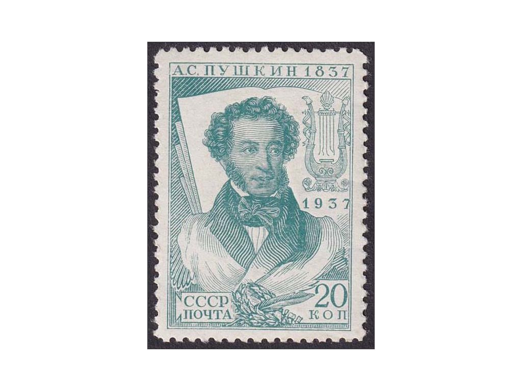 Poštovní známka, 1937, 20 K Puškin, L 12 1/2, MiNr.550Ax, **