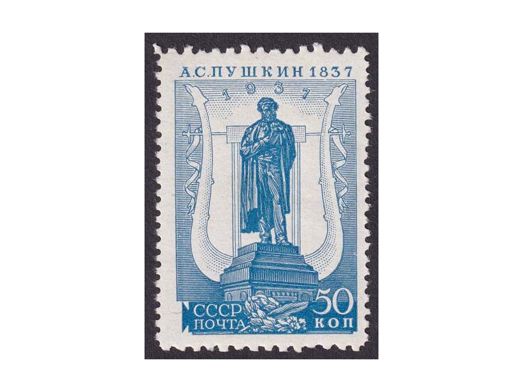 Poštovní známka, 1937, 50 K Puškin, L 11:12 1/2, MiNr.553Dx, **