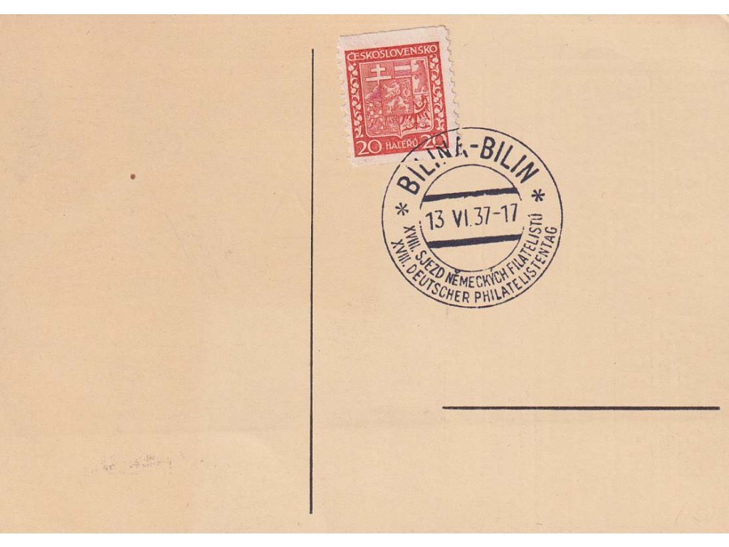 Pamětní razítko, 1937, Bílina, XVIII. Sjezd německých filatelistů, propagační pohlednice, neprošlé